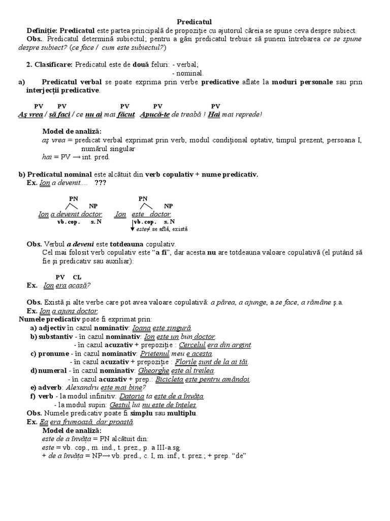 Bunicul a rămas acasă. 2 verb copulativ atunci cand impreuna cu un nume predicativ poate indeplini functia sintactica de predicat nominal si nu are sensurile enumerate anterior. A se gasi a se afla a exista a se intampla a se petrece a costa a trai a fi de origine. Verbe predicative verbele predicative au înțeles de sine stătător adică pot spune ceva despre subiect pot forma singure predicatul când se află la un mod personal.