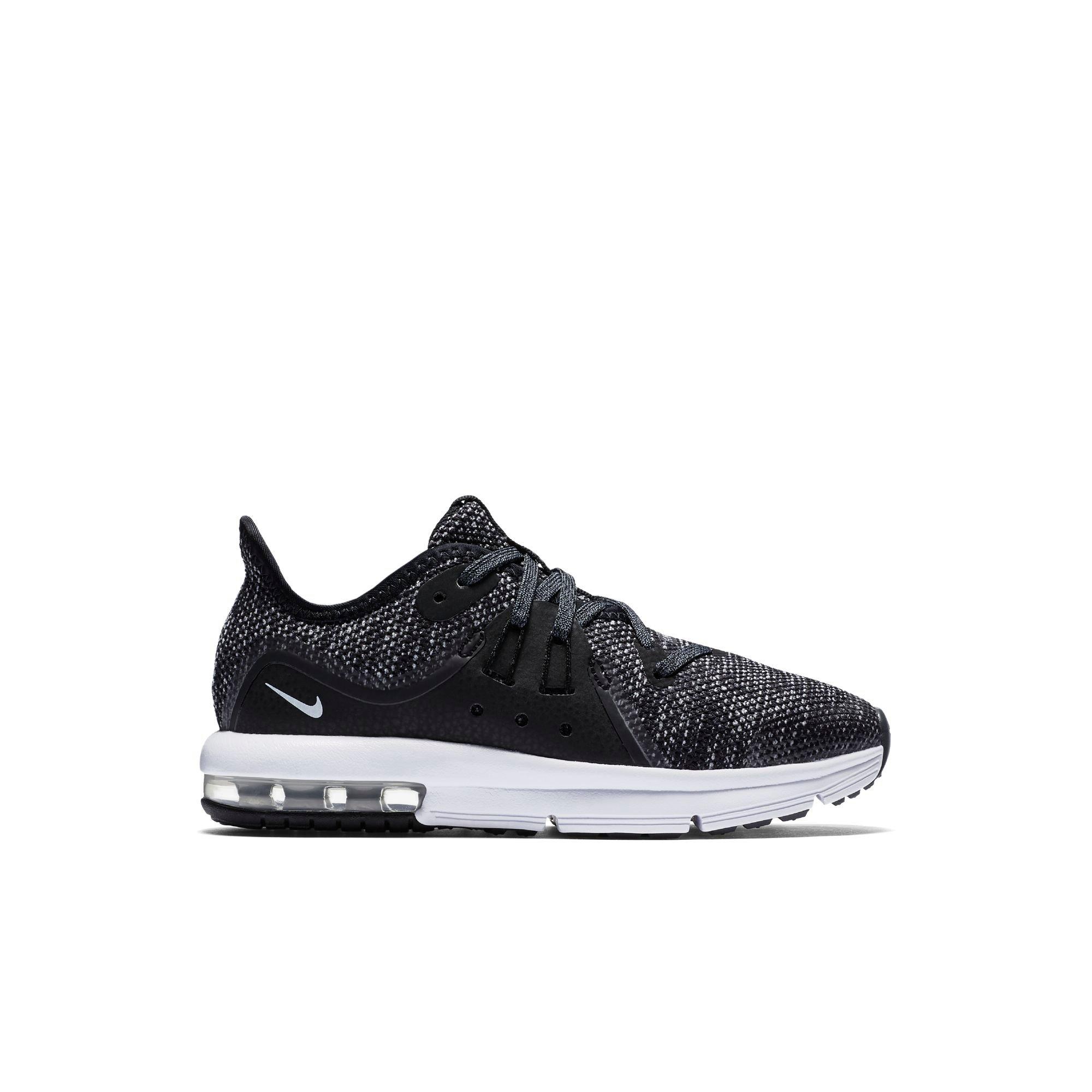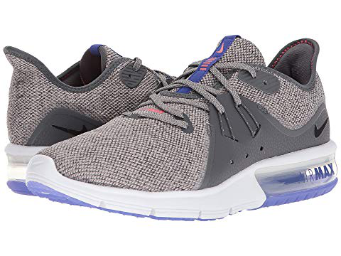 This athletic shoe features a stretchy and supportive knit fabric upper and grooves in the midsole for additonal flexibility. 100 authentic nike product. Designed for short distance runs the air max sequent 3 provides maximum cushion with its large visible air unit in the heel and a full length phylon foam midsole for a lightweight ride. The air max sequent 3 also features the max air unit to have a responsive effect each time your heel hits the ground.