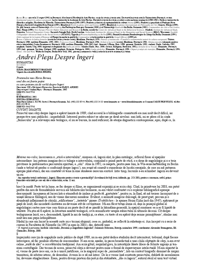 Era neconvențional fără ostentație știa de toate în multiple domenii dar fără urmă de pedanterie avea umor putea fi ironic fără menajamente nu încăpea în standardele obișnuite ale clericului edificat și edificator. Cartea despre ingeri de andrei plesu. Humanitas 2015 isbn 978 973 50 4767 2 821 135 1 4 editura humanitas piaţa presei libere 1 013701 bucureşti românia tel. Humanitas 2003 isbn 973 50 0577 8 235 1.