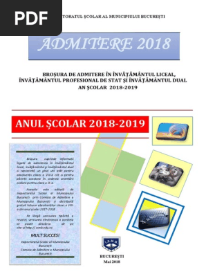 Brosura admitere liceu 2019. Numarul de locuri la colegiile din capitala nu a fost modificat iar pentru invatamantul profesional sunt 78 de clase alocate fata de 34 anul trecut. Broșura de admitere în învățământul liceal învățământul profesional de stat și învățământul dual an școlar 2019 2020 bucurești mai 2019 inspectoratul școlar al municipiului bucurești admitere 2019 anul școlar 2019 2020 broșura cuprinde informații legate de admiterea în învăţământul. Cu ce medie s a intrat anul trecut la clasele de matematică informatică. Broșurile de admitere la liceu 2019 trebuia să fie publicate pe 13 mai 2019 conform unui ordin de ministru.