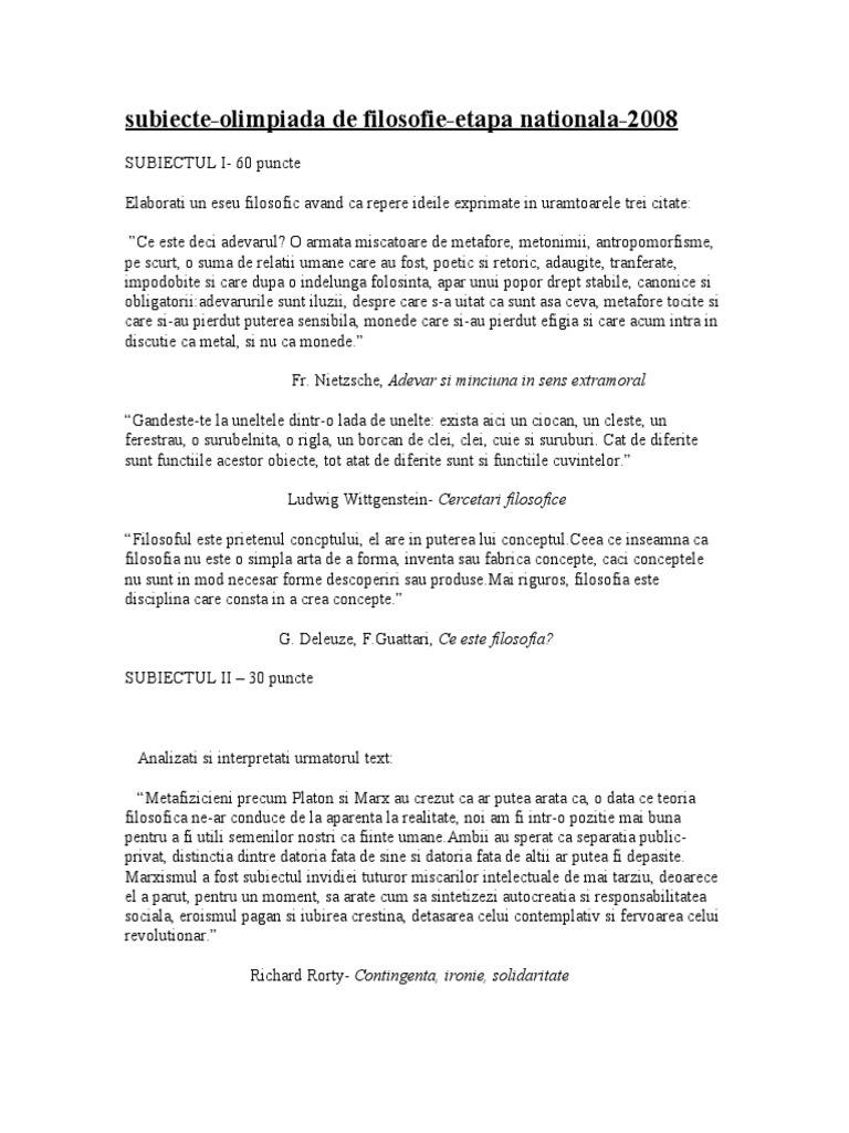 încercând o reprezentare a conceptului de filosofie ca pe o notiune a limbajului cotidian wolfgang schadewaldt scria citez. întrebarea cum se poate defini filozofia este chiar și ea una filozofică. Eseul este un text scris cu scopul de a prezenta și argumenta un punct de vedere al autorului pe o temă dată. Daca trebuie sa expuneti o teorie este de preferat sa o reformulati in propriile cuvinte insotita de o nota de subsol cu trimitere la textul sursa referinte culturale excesive.