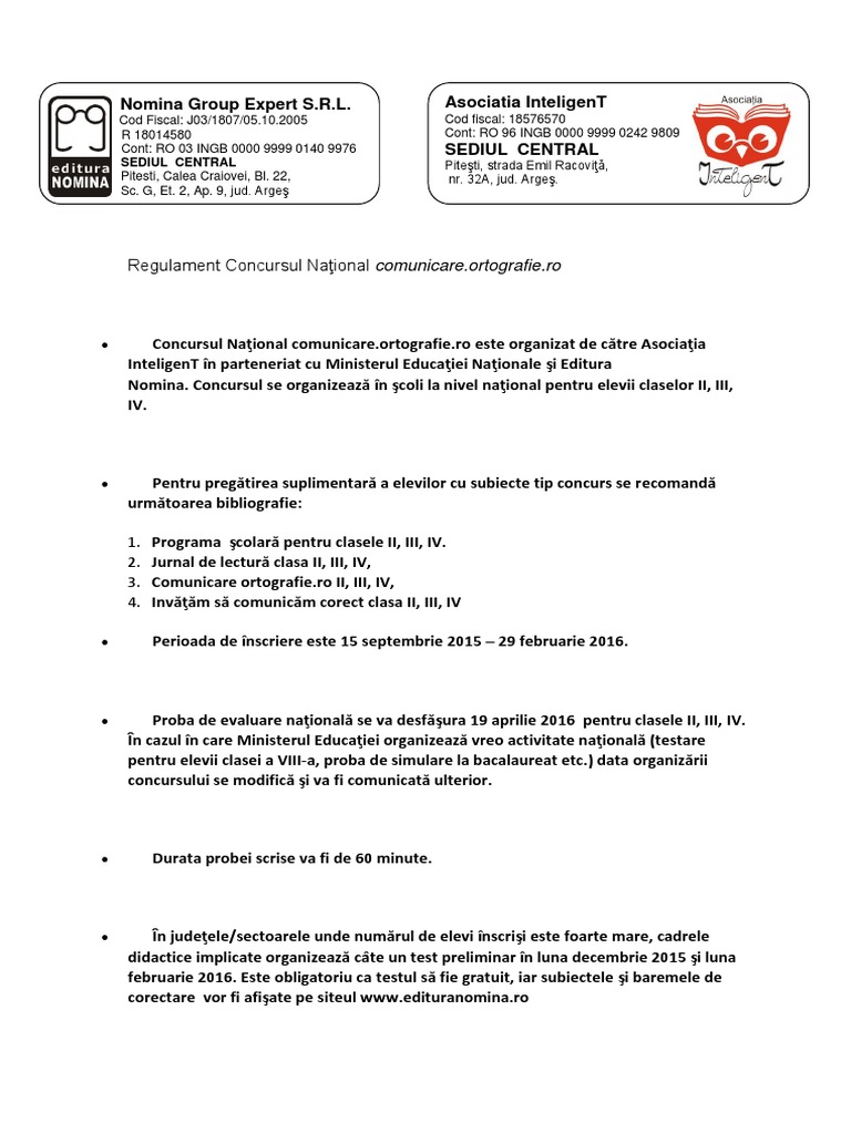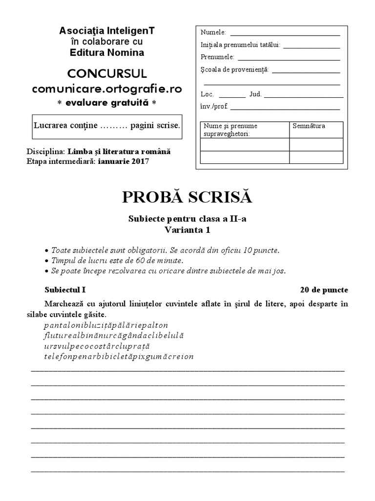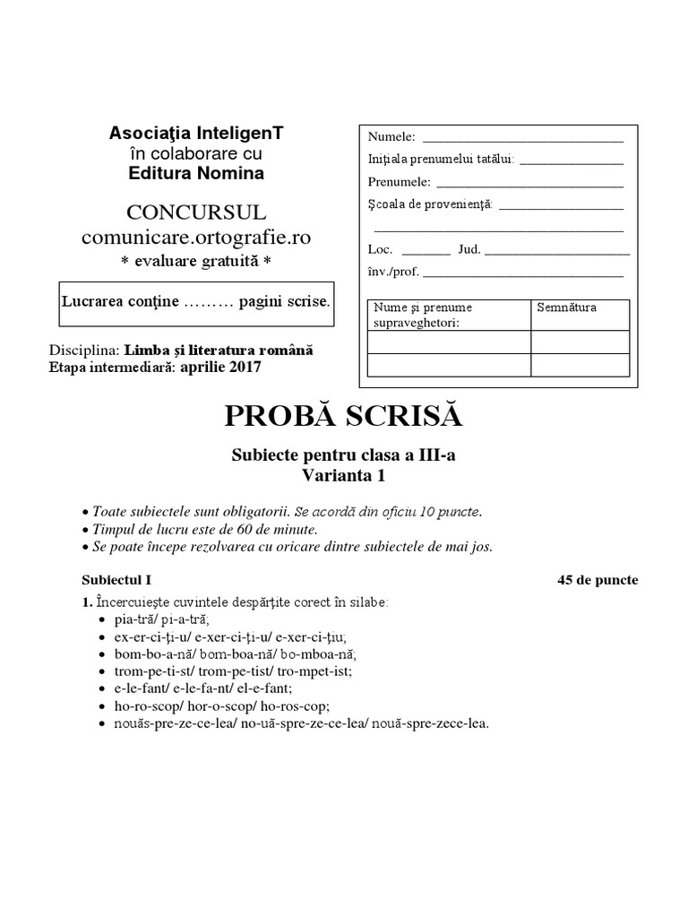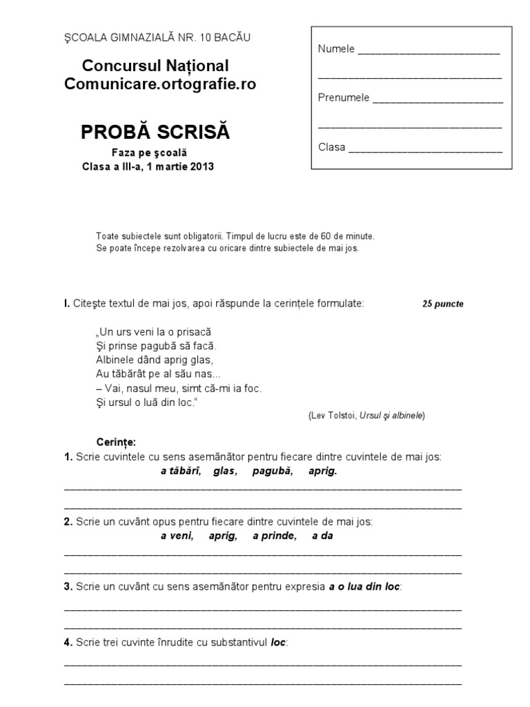 Concursul comunicare ortografie ro test preliminar subiecte şi bareme sibiu cls ii iv.