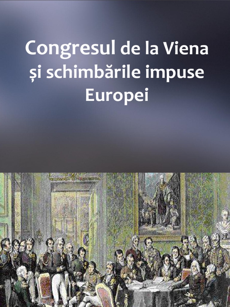 Anul 2014 aduce două aniversări aparte. Congresul de la viena. Congresul de la viena 1 noiembrie 1814 9 iunie 1815 conferință a statelor europene desfășurată la sfârșitul războaielor napoleoniene cu scopul de a restaura ordinea conservatoare existentă înaintea izbucnirii revoluției franceze prin restabilirea vechilor regimuri absolutiste și de a înlătura prin stabilirea de noi granițe urmările ocupației franceze în europa. Si prusia au dominat lucrarile congresului de la viena aceste.