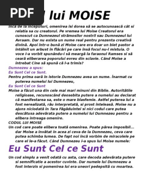 De aceea in loc de un alt nume spune oamenilor. Eu sunt cel ce sunt. Viaţa este bunul cel mai de preţ pe care dumnezeu l a dăruit omului şi timpul în care să se pregătească pentru mântuire şi dobândirea vieţii veşnice. Cel ce se numeste eu sunt m a trimis la voi acesta este numele meu pentru vesnicie acesta este numele meu din neam in neam exod 3 stiti ce ne spune de fapt dumnezeu aici.