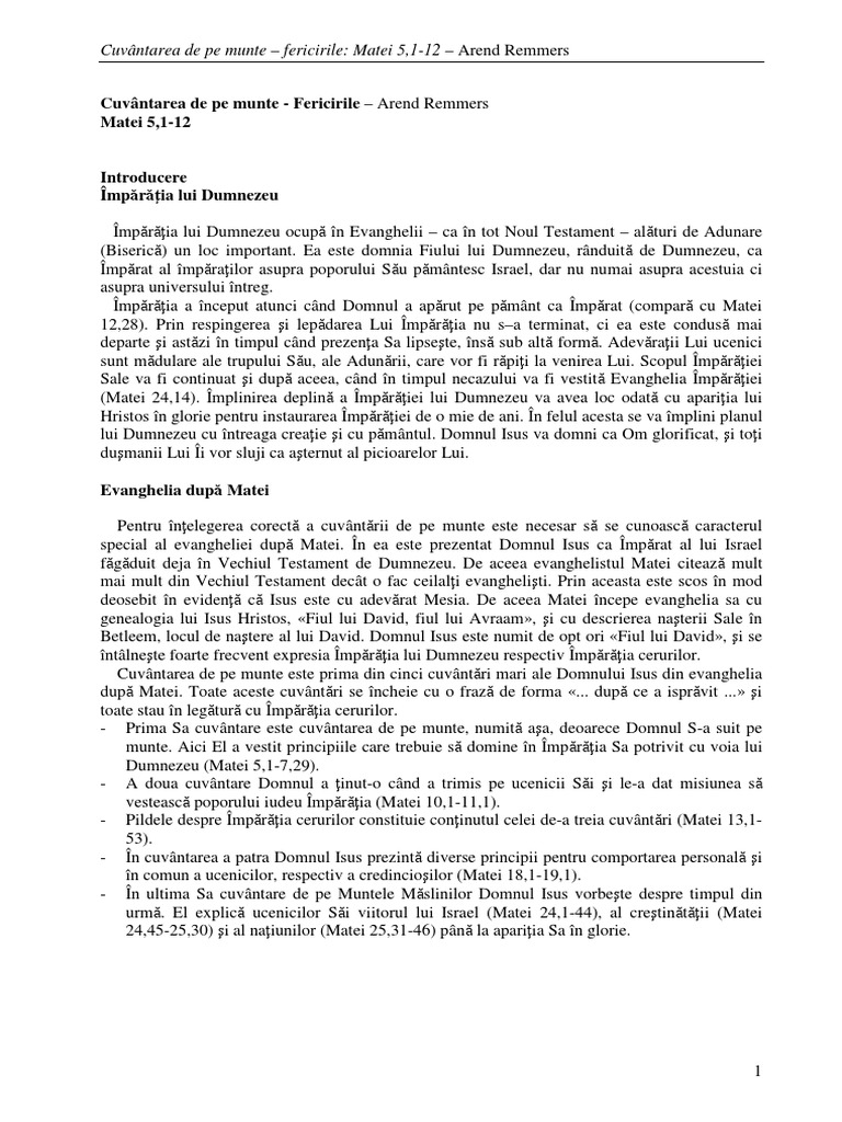 Sa nu socotiti ca am venit sa stric legea sau proorocii. Biblia sau sfanta scriptura versiune diortosita dupa septuaginta redactata si adnotata de ips bartolomeu valeriu anania. Fericirile de pe muntematei cap 5 1 16 când a văzut isus noroadele s a suit pe munte. Fericiţi cei săraci cu duhul că a lor este împărăţia cerurilor.