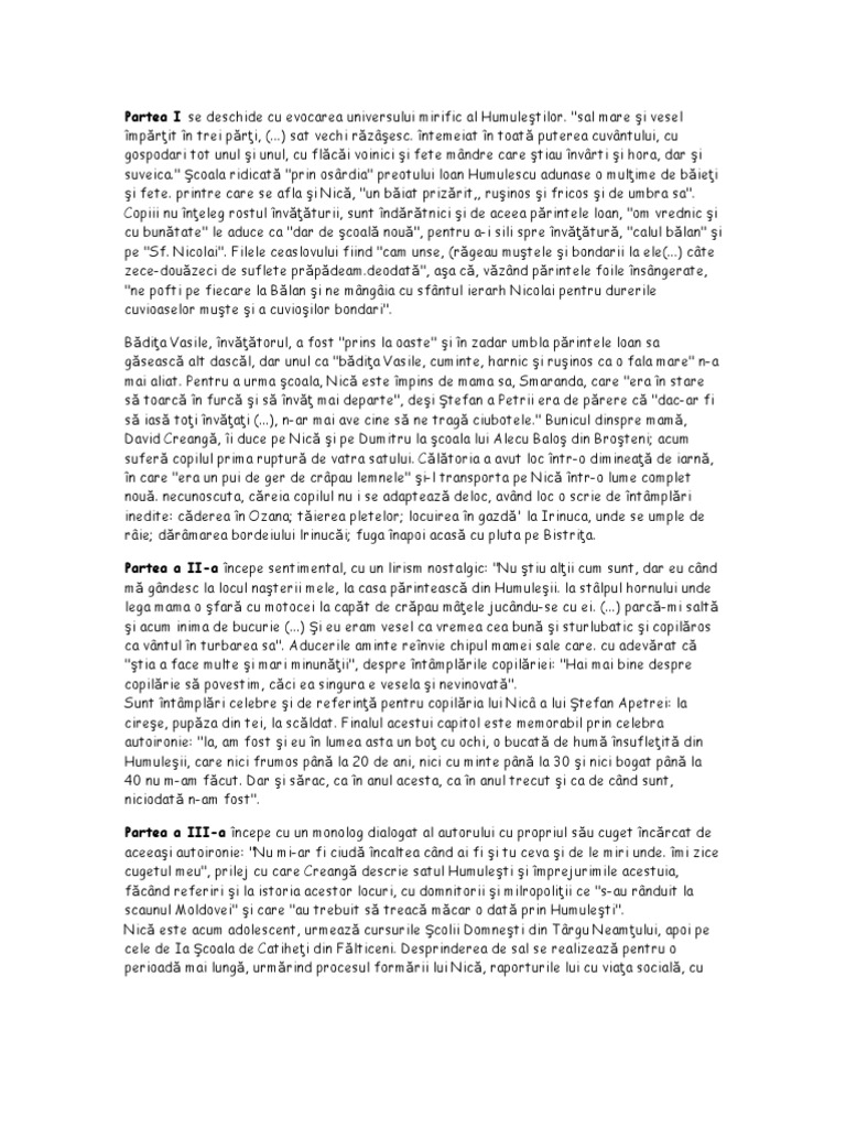 Mai mult chiar necontenitul ei urcuş către zenitul marilor valori ale literaturii române. Tuesday 13 october 2020 turda ioan ratiu 54 3 tel. Autorul descrie satul humuleşti satul natal şi împrejurimile acestuia aminteşte de istoria acestor locuri cu domnitorii şi mitropoliţii ce s au rânduit la scaunul moldovei şi care au trebuit să treacă măcar o dată prin humuleşti. Nu mi ar fi ciudă încaltea când ai fi şi tu ceva şi de te miri unde îmi zice cugetul meu.