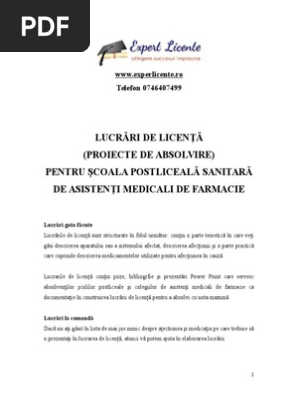 Lucrare de licenta farmacie model. Model disponibil şi pe. O lucrare de licenţă are de obicei între 60 şi 100 de pagini. Descarca lucrari de licenta pentru farmacie. Gheorghe marinescu 38 tirgu mures mures 540142 romania.