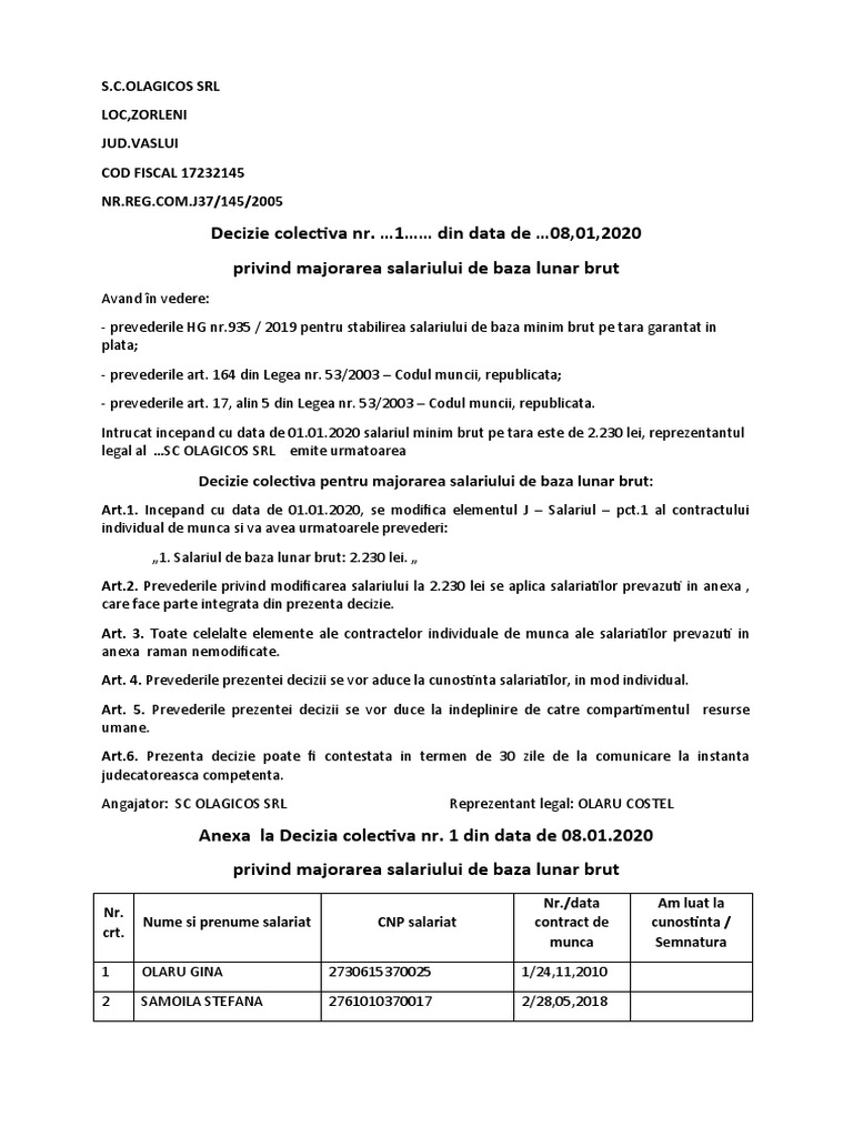 Majorare salariu minim 2020. Salariul minim pe țară o să crească mai exact cu 150 de lei brut și 83 de lei net conform hotărârii guvernului nr. Pentru model decizie colectiva valabil pentru majorare salariu minim din 01 01 2020 click aici. Update 18 12 2019 act adițional majorare salariu minim 2020 model pentru angajatori gratuit editabil util click aici. 53 2003 codul muncii republicată cu modificările şi completărileulterioare se stabileşte în bani fără a include sporuri şi alte adaosuri la suma de 2 230 lei lunar pentru un program normal de lucru în medie de 167 333 ore pe lună.