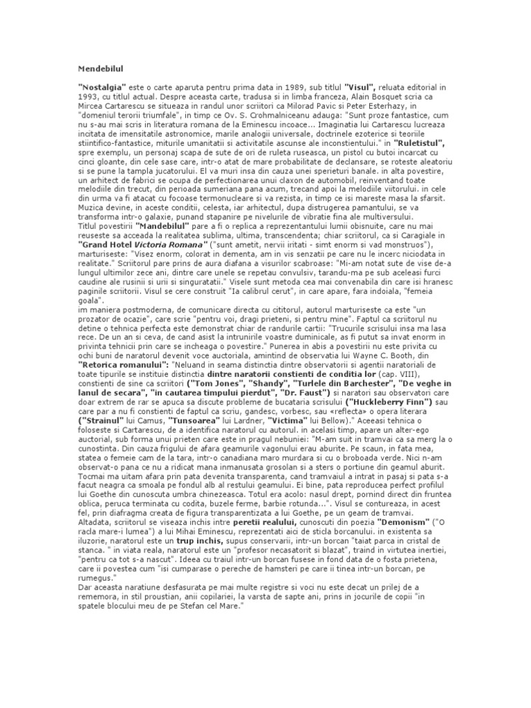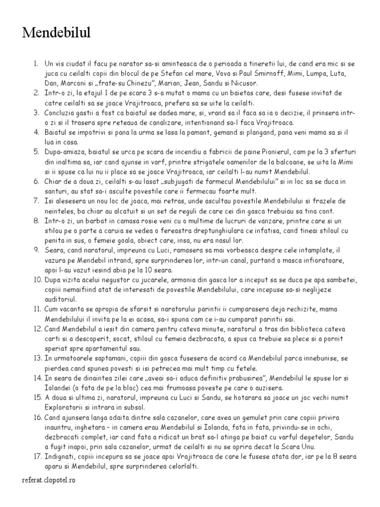 Rezumat de aproape 3 pagini word la nuvela rem publicata in anul 2006 si incluza in volumul de nuvele fantastice numit nostalgia. Mendebilul mircea cartarescu 1. Daca nu ma insel mendebilul ne a fost data ca si lectura oarecum optionala in clasa 9 a la romana. Academia edu is a platform for academics to share research papers.
