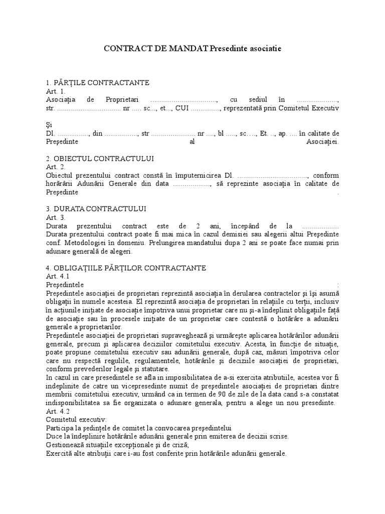 Model contract de mandat presedinte asociatie. Un membru al comisiei numarul de membrii fiind impar 3.