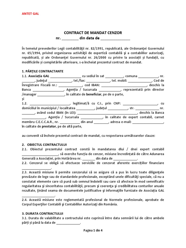 8 cenzorul membrii comisiei de cenzori angajat angajati al ai asociatiei de proprietari este sunt remunerat remunerati pe baza unui contract de mandat conform hotararii adunarii generale a asociatiei de proprietari consemnata in procesul verbal. Lucreaza pe baza de. Model contract de mandat cenzori asociatie. X localitatea bucuresti str.