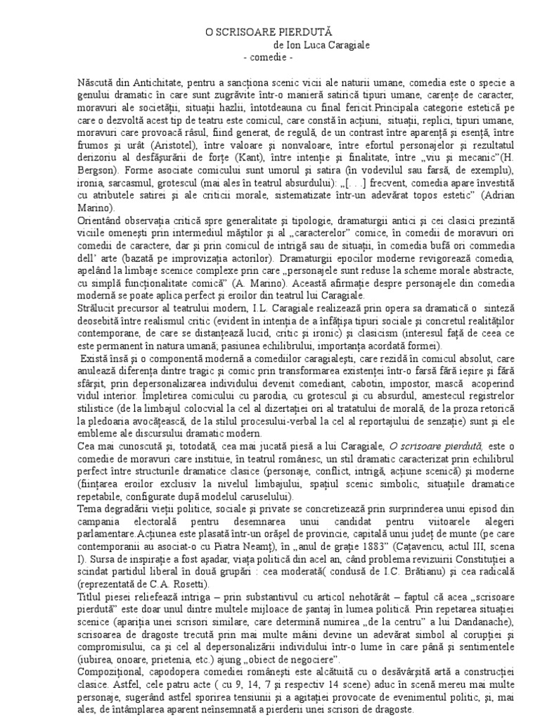 O scrisoare pierduta de citit. ştefan tipătescu prefectul judeţului. Pe adresa policlinicii în care profesez din 1991 a sosit o scrisoare pentru mine. Caragiale caragiale can be regarded as a good source for advice on positive psychology. Piesa o scrisoare pierduta scrisa de ion luca caragialepiesa o scrisoare pierduta scrisa de ion luca caragiale este disponibila online pe rcp regizorcautpiesa ro.