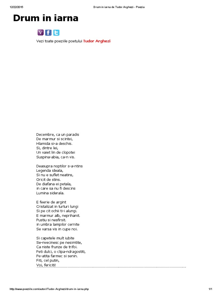 Poezii despre poezii tudor arghezi scurte rezultatele următoare se referă la oricare dintre termenii căutaţi. Mutînd pe strune mîna fuiorul cînd se ncurca.