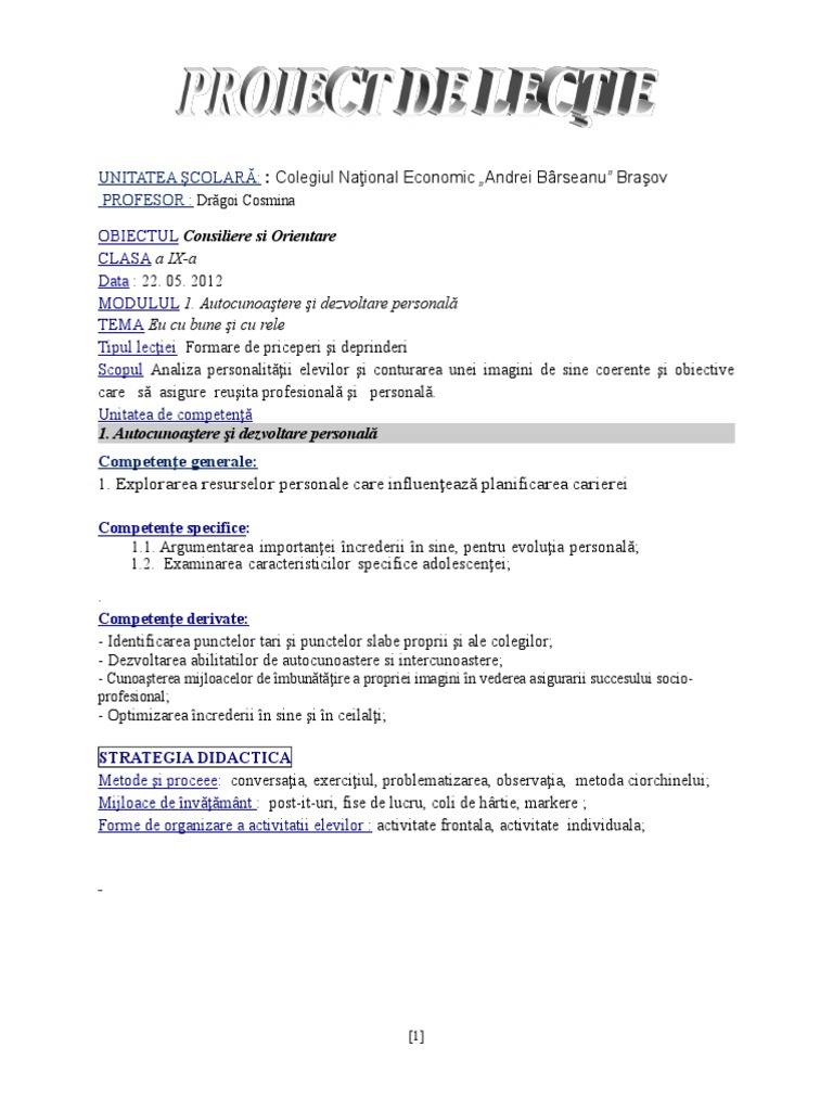 Prima pagină învăţământ primar consiliere si orientare lecţii dezvoltare personala eu si ceilalti. Elena buric colegiul dobrogean spiru haret tulcea. Materiale didactice pentru clasa întâi dezvoltare personală. Proiect didactic consiliere și dezvoltare personală clasa.