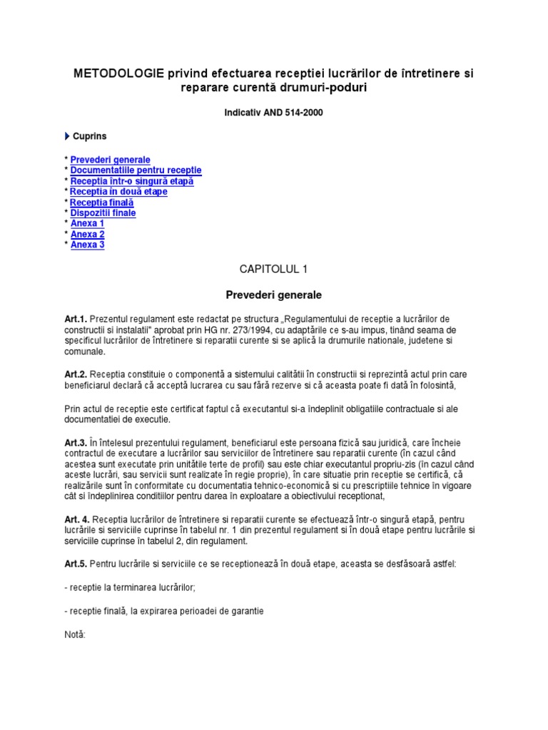 Recepția finală este convocată de investitor la cel mult 15 zile de la expirarea termenului de garanţie. D terminarea tuturor lucrarilor prevazute in contractul incheiat intre investitor si executant si in documentatia anexa la contract. 273 1994 cu modificările şi completările ulterioare precum şi cu modificările aduse prin prezenta. Referatul de prezentare întocmit de proiectant cu privire la modul în care a fost executată lucrarea.