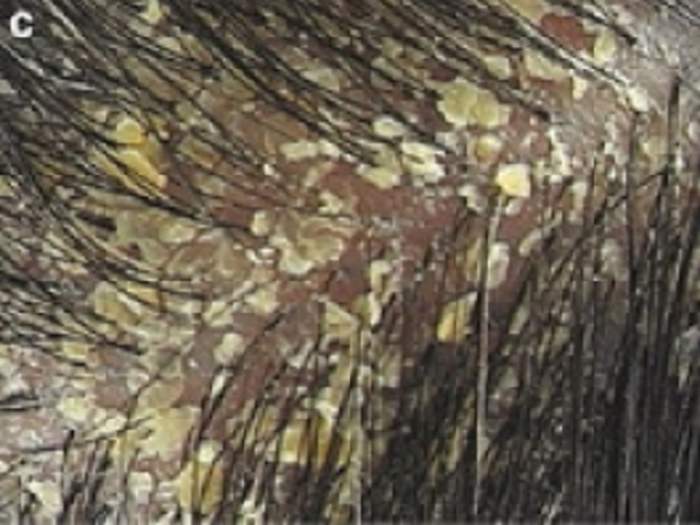 Dermatita seboreică cunoscută drept coji în cap afectează tegumentele scalpului.