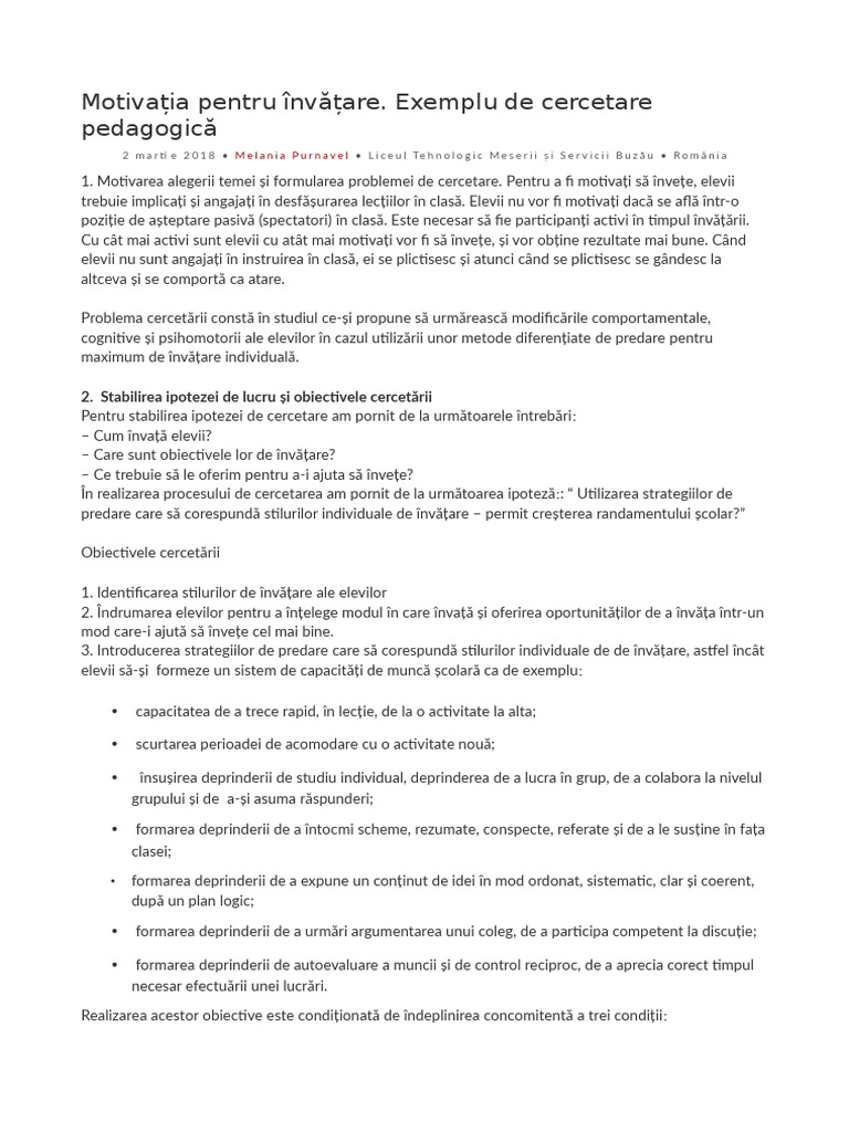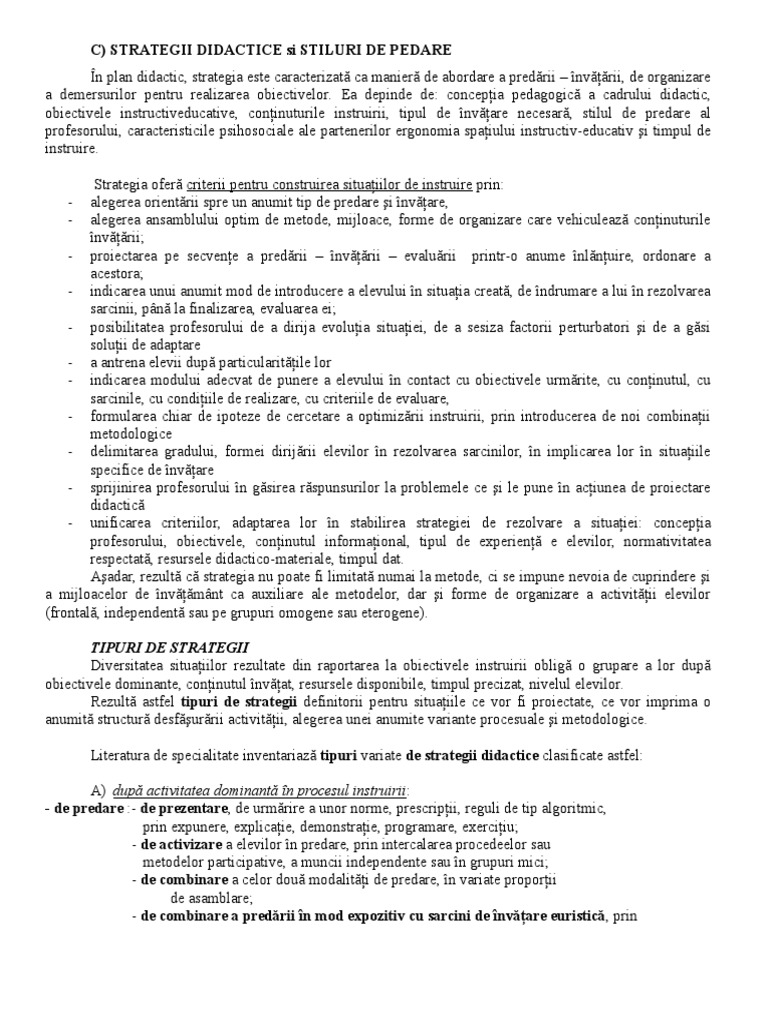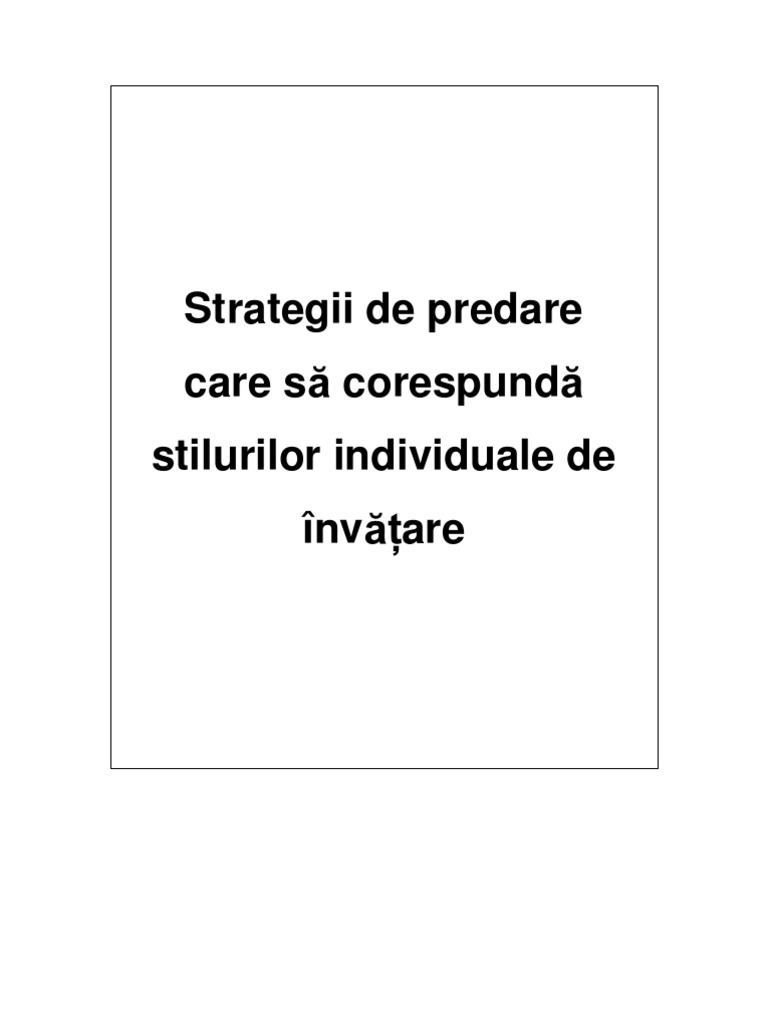 Strategii de predare în concordanţă cu stilurile de învăţare ale elevilor. Analiza cantitativă a datelor probează că s au. Profesorii trebuie doar să ia în considerare stilul de învățare de grup și să învețe în conformitate cu acest stil în loc să se adapteze la stilurile de învățare variate ale elevilor. Aceasta va fi o situaţie de învăţare în care elevii se vor simţii în largul lor vor avea încredere în această strategie fişele de lucru suportul de curs trebuie prezentat în cadrul. Un curriculum proiectat indiferent in ce maniera conceptuala sau varianta de organizare se cere a fi realizat adecvat printr un proces de invatamant concret.