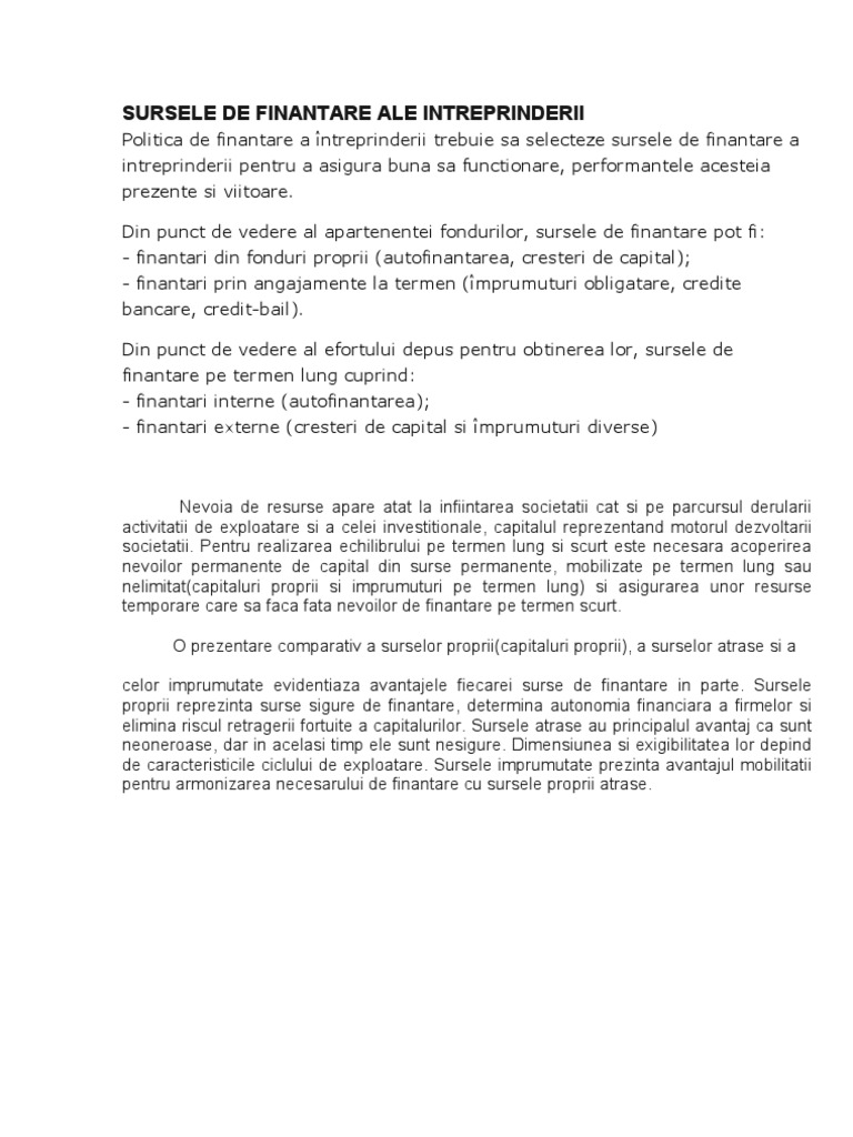 Articol realizat de laurenţiu mihai cu sprijinul firme bulgaria. De aici mai pot rezulta si alte surse de finantare mai non comerciale despre care voi discuta într un viitor articol. Surse proprii de finanţare. Surse potentiale de finantare sunt programele uniunii europene cele ale guvernului romaniei ale usaid etc.