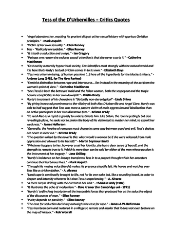 Here are a few quotes from tess of the d urberville. Find the quotes you need in thomas hardy s tess of the d urbervilles sortable by theme character or chapter. Find the quotes you need to support your essay or refresh your. Tess of the d urberville is a tragedy the novel details the loss of innocence and the ultimate destruction of a young girl.