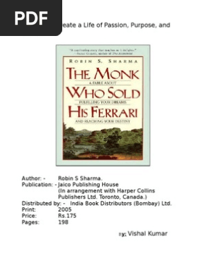 The monk who sold his ferrari book review pdf. The book was published in multiple languages including english consists of 272 pages and is available in paperback format. Download the monk who sold his ferrari pdf preview copy free. The first edition of the novel was published in 1996 and was written by robin s. The monk who sold his ferrari is a self help book which is crafted to help the seekers in training and strengthening their mind for living courageous balance abundant and joyful life.
