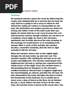 Other sets by this creator. The narrator the murderer tells the story of when he murdered an old man with a vulture eye and insists that he is not insane. Answered by aslan on 2 21 2018 4 52 am which short story are you referring to. The tell tale heart is a retelling of murder and madness and it is considered to be a classic of american literature.